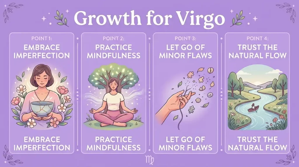 Finding harmony also involves setting realistic goals and recognizing personal achievements rather than constantly seeking perfection. Embracing hobbies, creative pursuits, and moments of relaxation can help Virgos recharge, fostering both emotional well-being and spiritual growth.